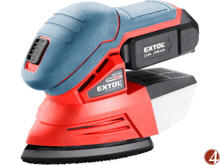 Aku vibrační bruska je ideální nástroj pro broušení dřeva a dřevěných materiálů, kovů a k zabroušení poškozených míst povrchové úpravy, např. barvy a laku, dále tmelů apod. bez použití vody. Díky svému tvaru je velmi vhodný pro broušení v rohových a obtížně dostupných prostorech. Brusná plocha je vybavena suchým zipem, který umožňuje snadnou výměnu brusných papírů. Integrované odsávání pilin udržuje čistý pracovní prostor při práci a po práci jednoduše vysypete sběrný box a je uklizeno. Pro běžnou práci dostačují jeden nebo dva 2000mAh akumulátory, které můžete rychle nabít v rychlonabíječce, pro náročnější nebo delší práci doporučujeme větší akumulátory s kapacitou 4000-5000mAh. Akumulátor lze použít ve všech typech nářadí řady EXTOL SHARE20V. Díky použité Li-ion technologii je ho možné kdykoliv dobíjet, aniž by se tím snižovala jeho kapacita. Li-ion akumulátor ztrácí energii vlivem samovybíjení velmi pomalu a vydrží dlouho nabitý a připravený k použití.